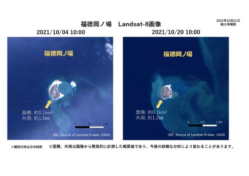 福徳岡ノ場で確認された新島の大きさについて(令和3年10月20日時点)