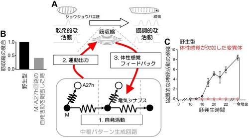 未熟な行動出力の感覚フィードバックを介した運動回路の自己構築