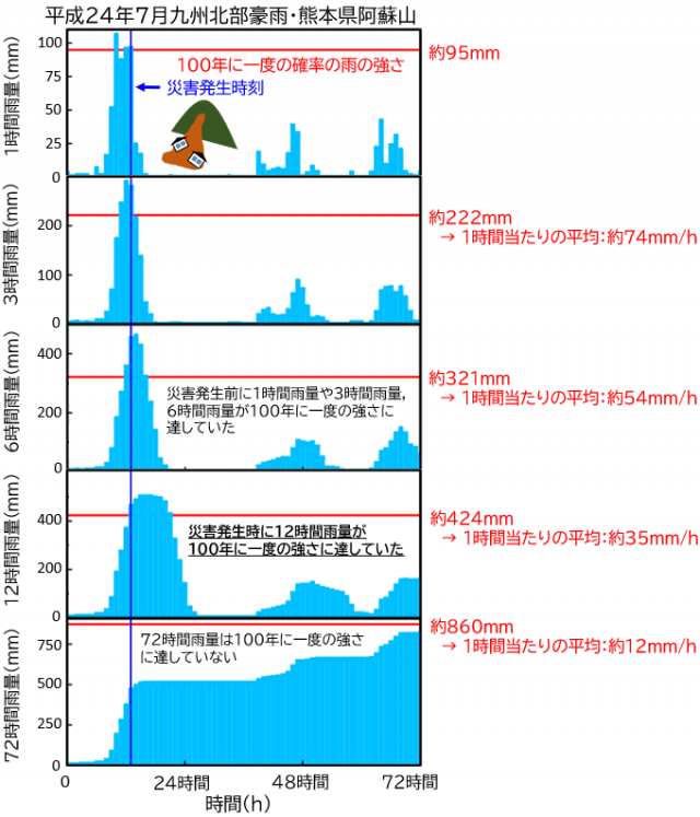 土砂災害が発生する危険性が高い豪雨の特徴を明らかにしました。平均雨量が100年に一度の確率の値に達した際に、土砂災害が発...