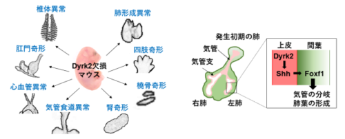 Dyrk2遺伝子を欠損させたマウスを新たに作製して解析を進めたところ、国の指定難病であるVATER症候群と類似した病態を...