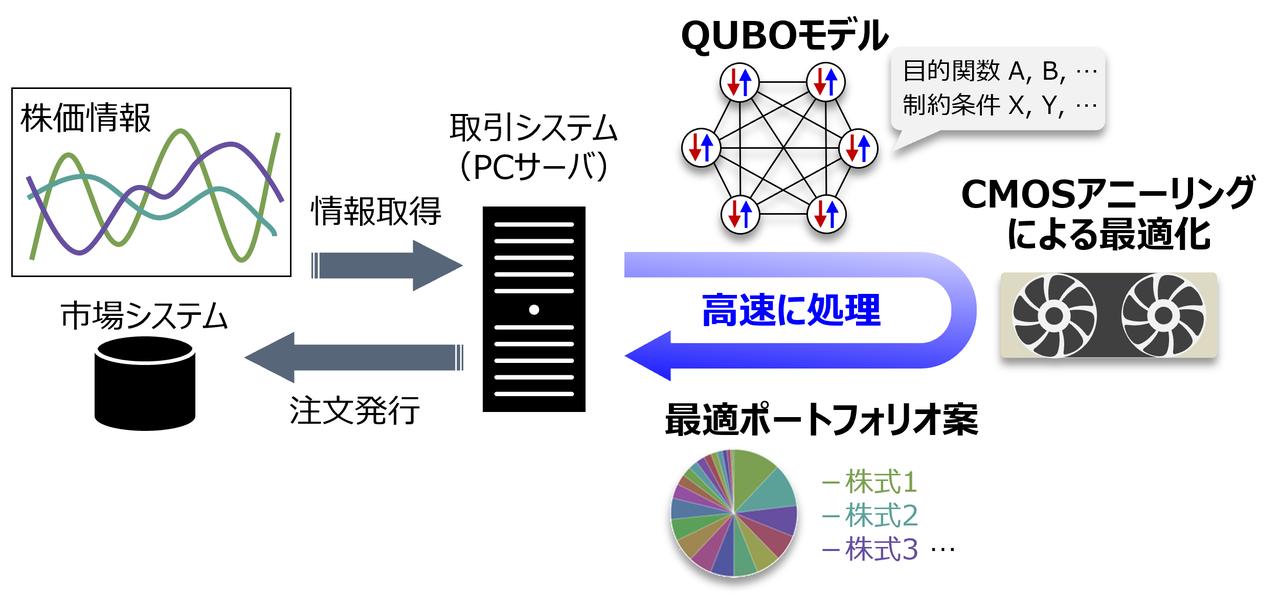組合せ最適化処理に適したCMOSアニーリングを高速の金融商品取引に適用するための技術を開発