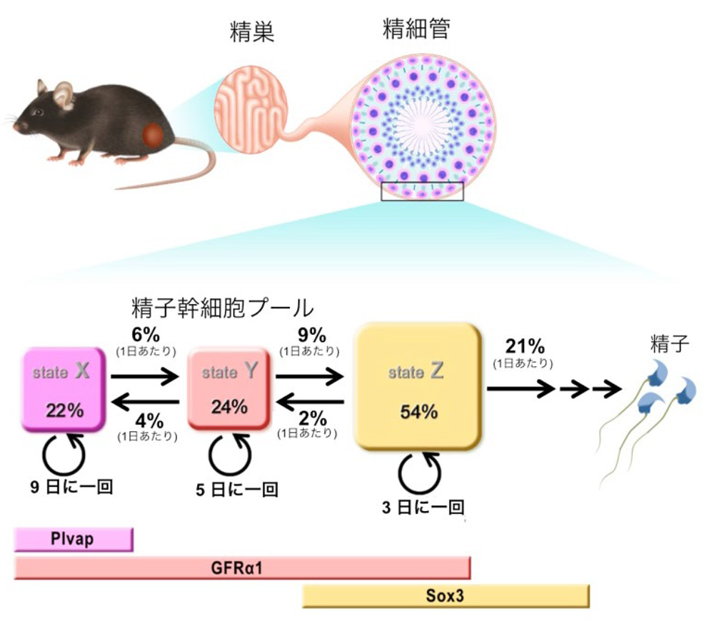 精子幹細胞は、未分化状態と分化状態の間を転移しながら精子を作り続ける