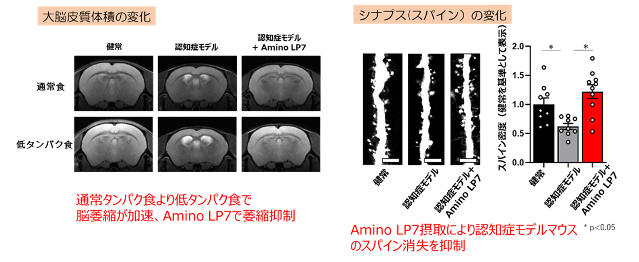 タンパク質の構成要素であるアミノ酸のうち、7種必須アミノ酸の摂取が脳機能維持・改善をする仕組みを明らかにしました。
