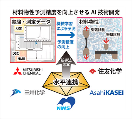 化学マテリアルズオープンプラットフォームからなる水平連携において、強度や脆さといった材料物性を機械学習で予測する際に、材...