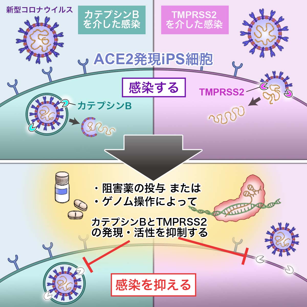 TMPRSS2とカテプシンBを標的とした新型コロナウイルスの感染阻害