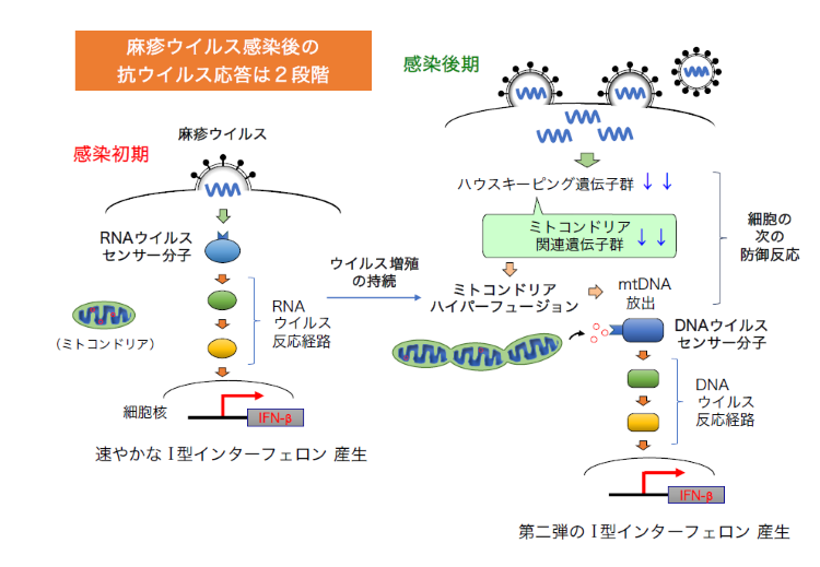 マイナス一本鎖RNAウイルス(モノネガウイルス)目に属する麻疹ウイルスが感染した細胞内で、RNAセンサーだけではなく、こ...