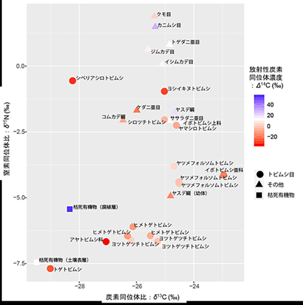 森林などの陸域生態系で優占するトビムシをはじめとする土壌動物の多くの分類群が、落葉など枯死有機物の分解者として機能してい...
