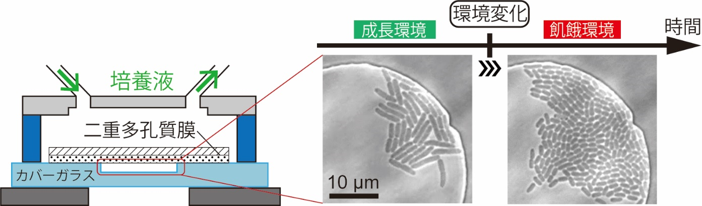 細菌集団の環境を高度に制御する新しいデバイスを構築し、栄養飢餓に対する大腸菌集団の応答の様子を観察した。細菌の細胞サイズ...