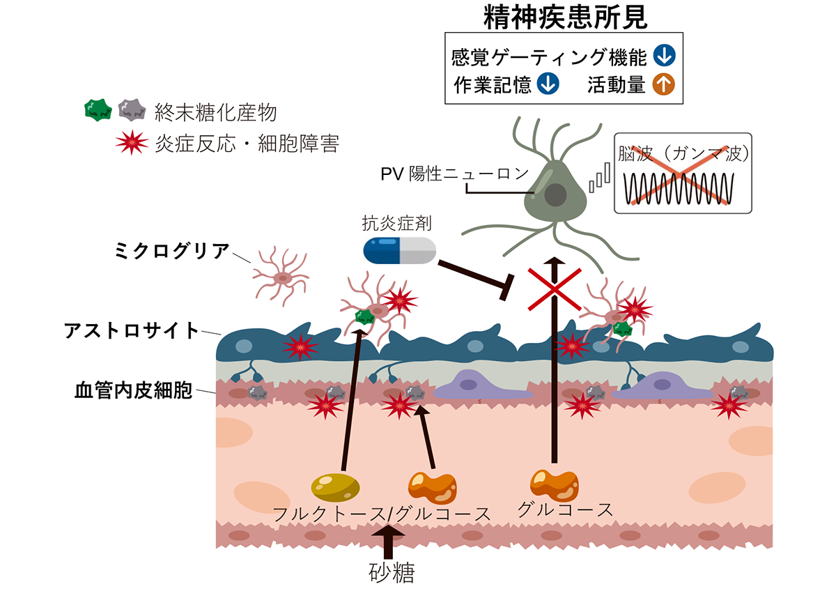 精神疾患の新たなリスク要因(砂糖の過剰摂取)と表現型(脳毛細血管障害)を発見