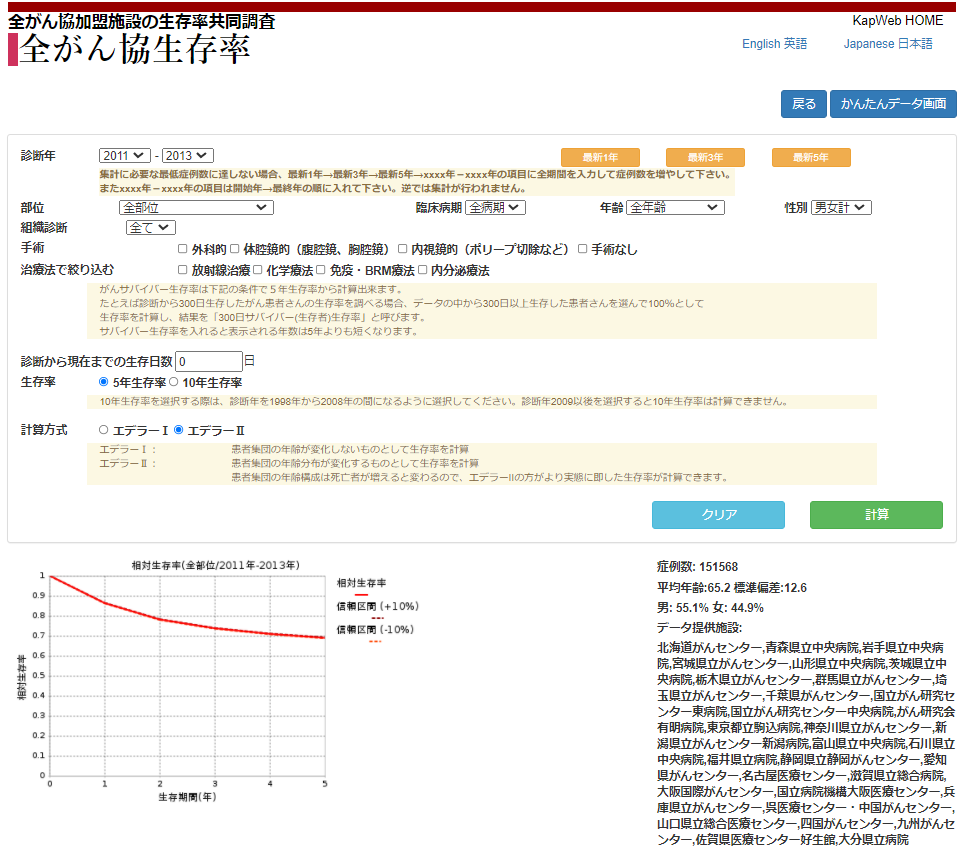 5年生存率、10年生存率データ更新 グラフデータベースKapWeb更新2021-11-10 全国がんセンター協議会,国立...