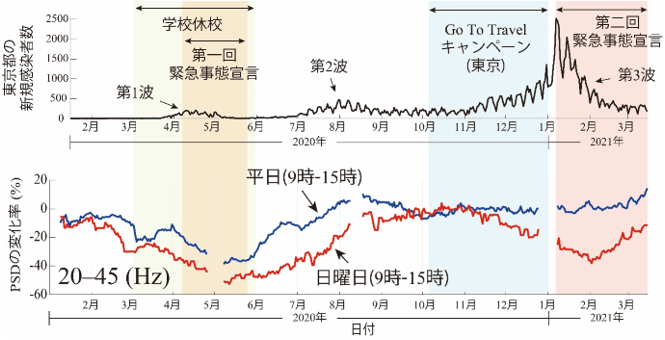 首都圏に設置された地震計データから、新型コロナウイルス感染拡大に伴う経済・余暇活動の縮小を可視化した。地震計データを人間...