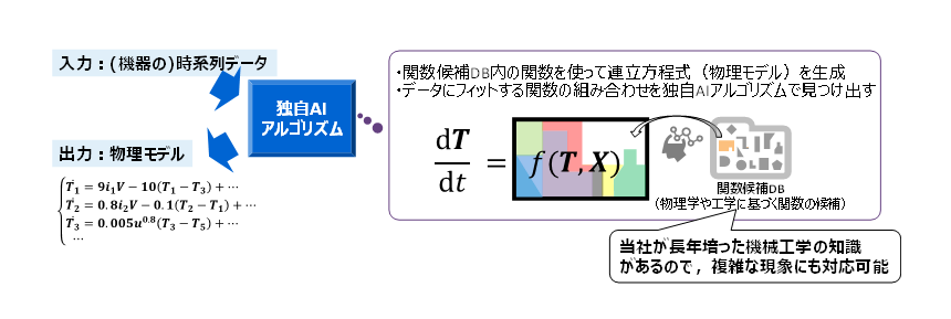 機器の時系列データから解釈性に優れた物理モデルを自動生成し、 機器の「異常検知」と「異常発生要因の判定」が可能なAI技術を開発