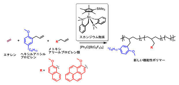 希土類金属触媒を用いることにより、2種類の極性オレフィンとエチレンとの「精密三元共重合」を達成し、迅速な自己修復性能を示...