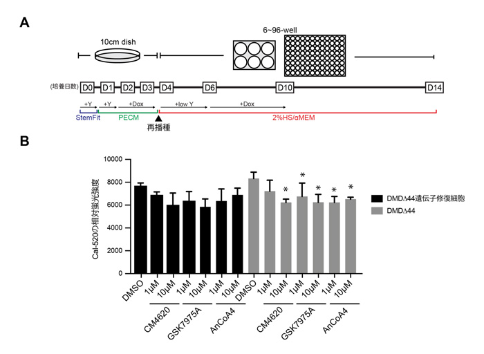 デュシェンヌ型筋ジストロフィー(DMD)患者さん由来iPS細胞を用いて、ストア依存性Ca2+チャネルの一つであるOrai...